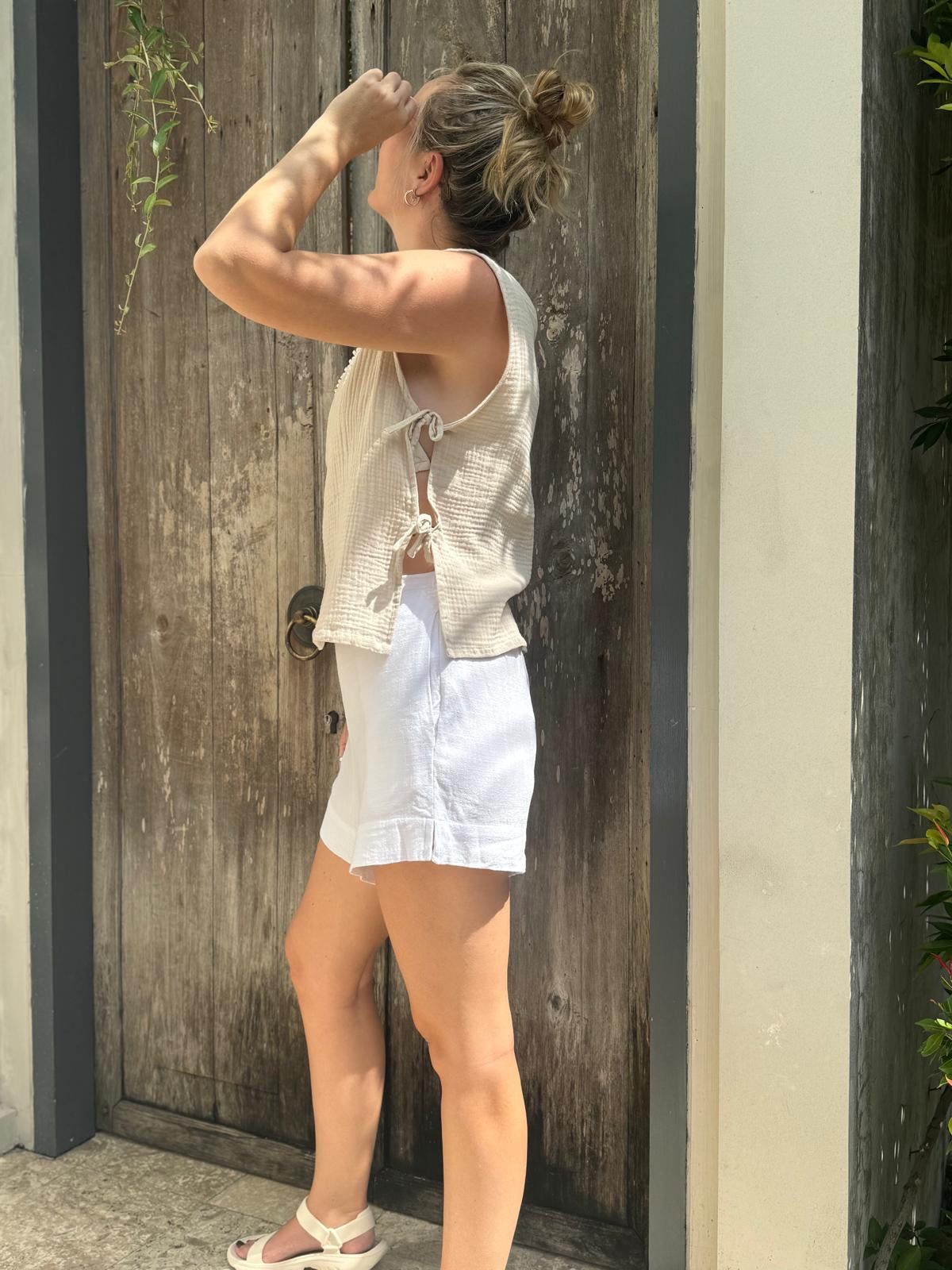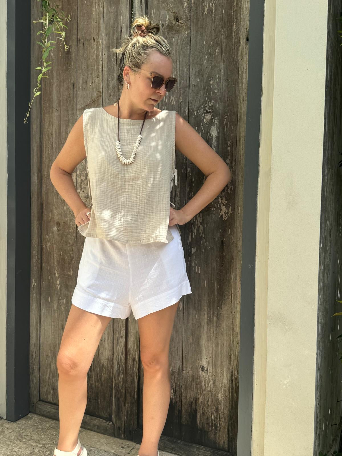 Light and breezy, the Dune Tie top is made from soft organic cotton with adjustable side ties, giving it that effortless and relaxed look and feel. A must-have for summer in its beautiful stone colouring.